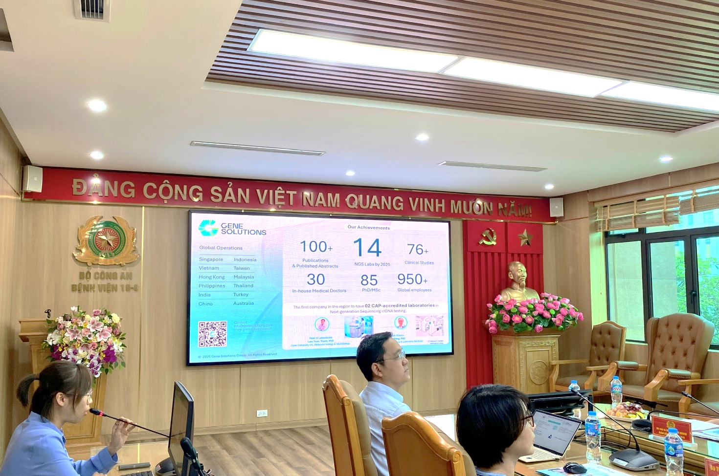 Toàn cảnh buổi làm việc giữa Bệnh viện 19-8 Bộ Công an và Công ty TNHH Gene Solutions.