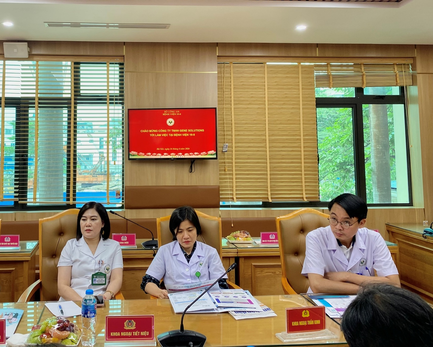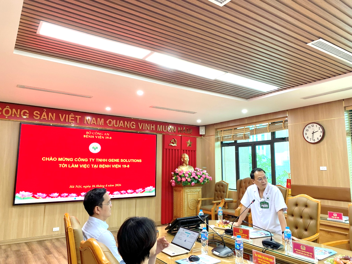 Chiều ngày 16/4/2026, Bệnh viện 19-8 Bộ Công an đã có buổi làm việc với Công ty TNHH Gene Solutions nhằm tiếp tục trao đổi, thống nhất các nội dung hợp tác, hướng tới nâng cao hiệu quả ứng dụng công nghệ gen trong công tác khám chữa bệnh, đồng thời thúc đẩy hợp tác giữa hai bên.