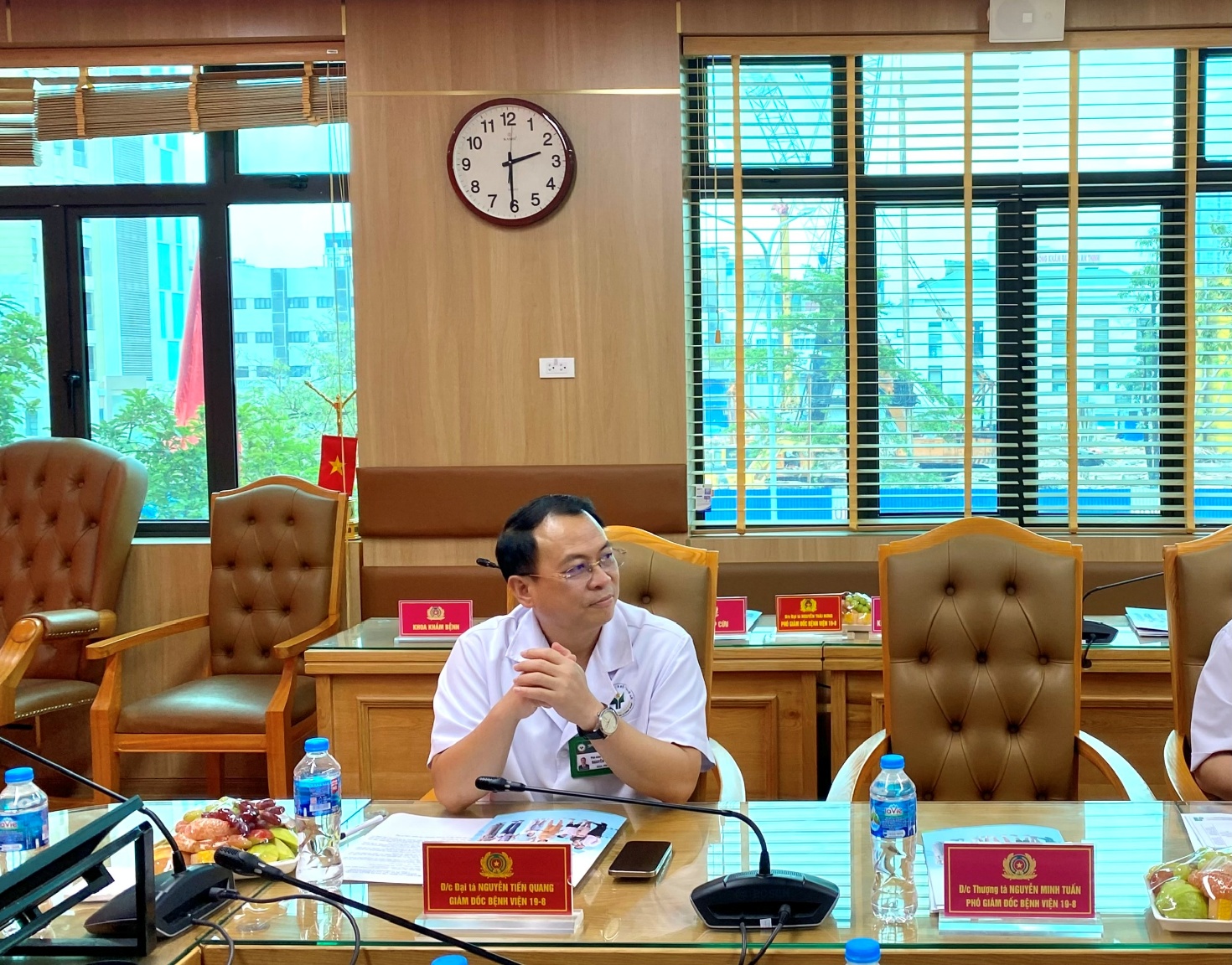 Tham dự buổi làm việc, về phía Bệnh viện 19-8 có PGS.TS, Đại tá Nguyễn Tiến Quang – Giám đốc Bệnh viện và đại diện Lãnh đạo các Khoa, Phòng, Trung tâm, Viện.