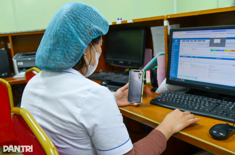 Giữa âm thanh đều đặn của máy monitor, cuộc gọi vội giúp chị Xuân chia sẻ khoảnh khắc đầu năm với gia đình.