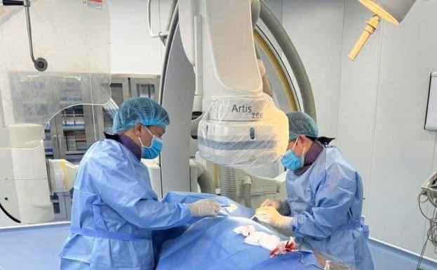 Bác sĩ Viện Tim mạch, Bệnh viện 19-8 thực hiện ca phẫu thuật. Ảnh: BVCC.