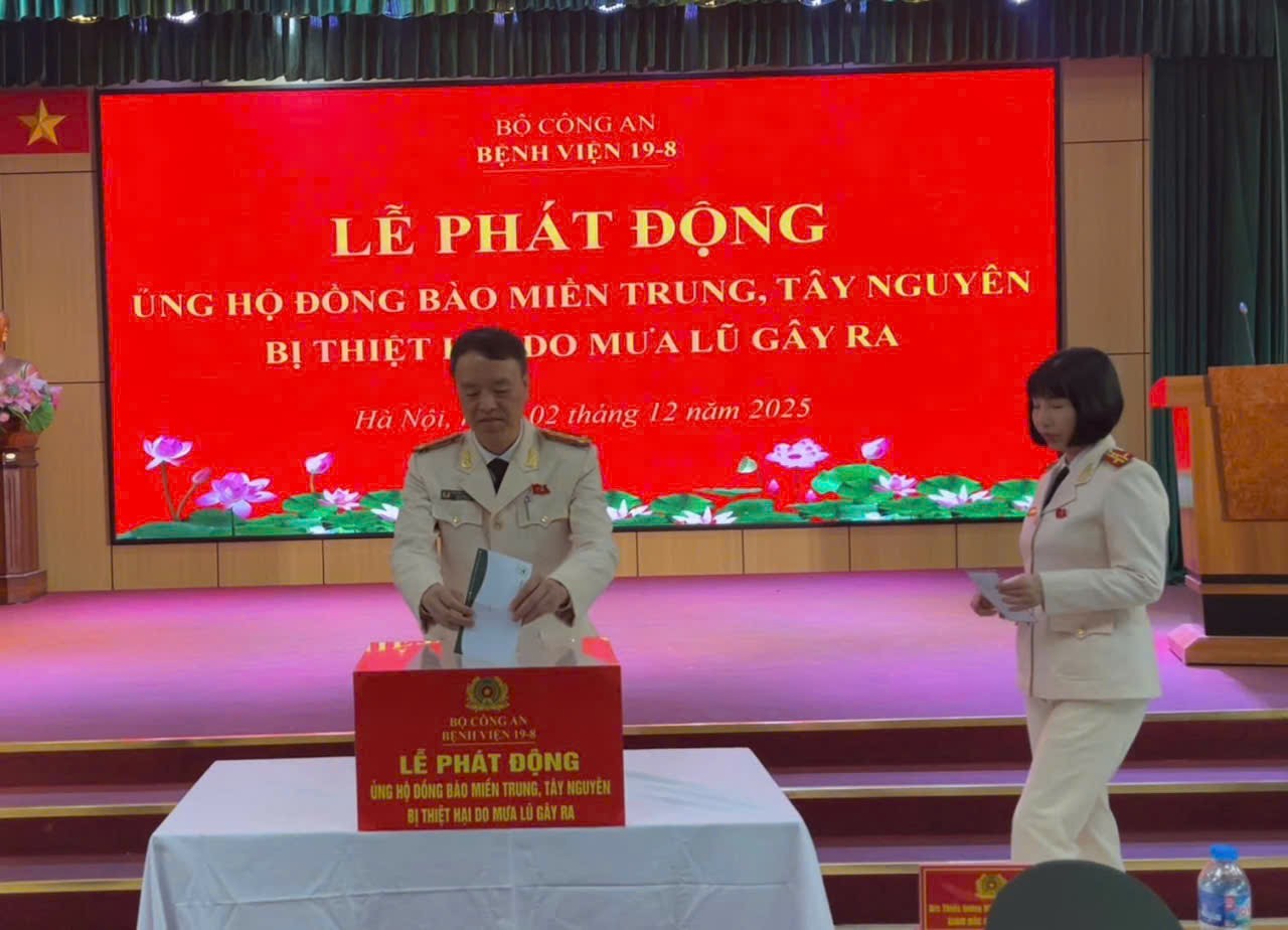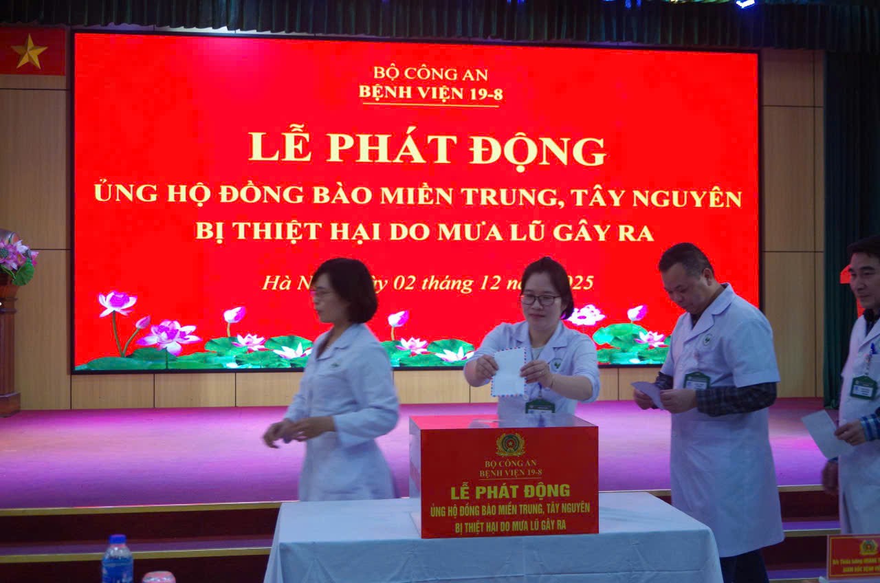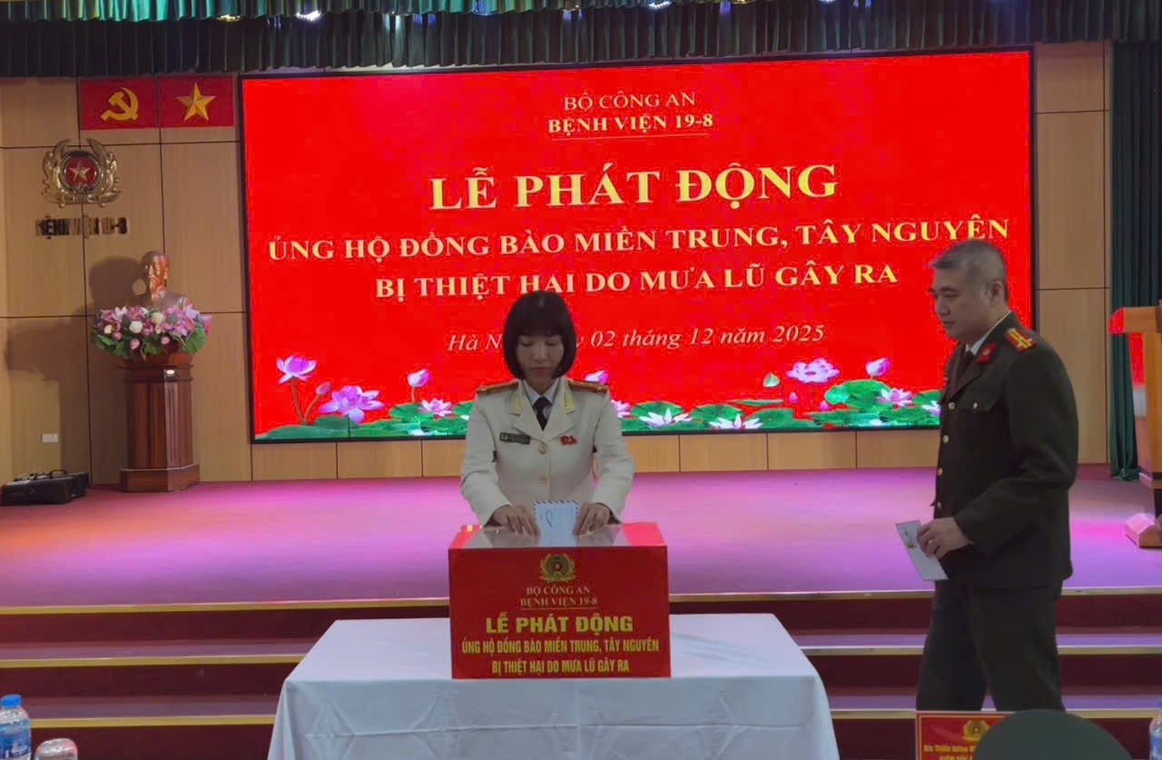 Ngày 02/12/2025, Bệnh viện 19-8, Bộ Công an tổ chức Lễ phát động ủng hộ đồng bào miền Trung, Tây Nguyên bị thiệt hại do mưa lũ gây ra. Lễ phát động ủng hộ đồng bào với tinh thần “tương thân, tương ái” không chỉ là hoạt động mang ý nghĩa nhân văn sâu sắc mà còn tiếp tục khẳng định vai trò của lực lượng Công an luôn có mặt ở những nơi khó khăn nhất, gian nguy nhất để bảo vệ nhân dân, đúng với truyền thống “Vì nước quên thân, vì dân phục vụ”.