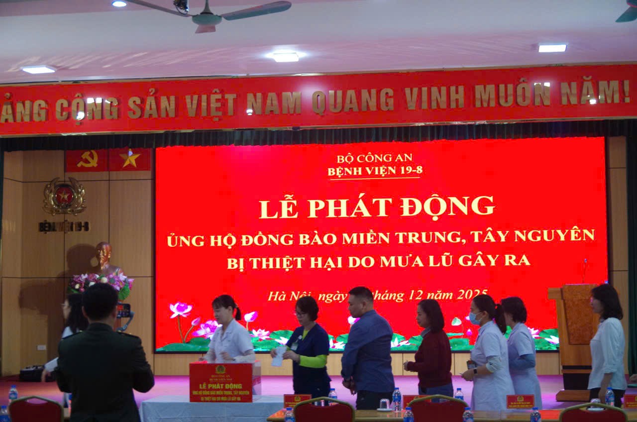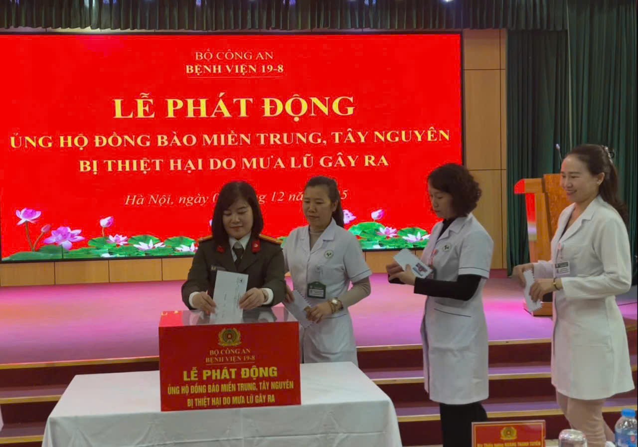 Hưởng ứng lời kêu gọi của Trung ương Mặt trận Tổ quốc Việt Nam, Bệnh viện 19-8, Bộ Công an tổ chức Lễ phát động ủng hộ đồng bào miền Trung, Tây Nguyên bị thiệt hại do mưa lũ gây ra nhằm giúp nhân dân vượt qua khó khăn, sớm ổn định cuộc sống.