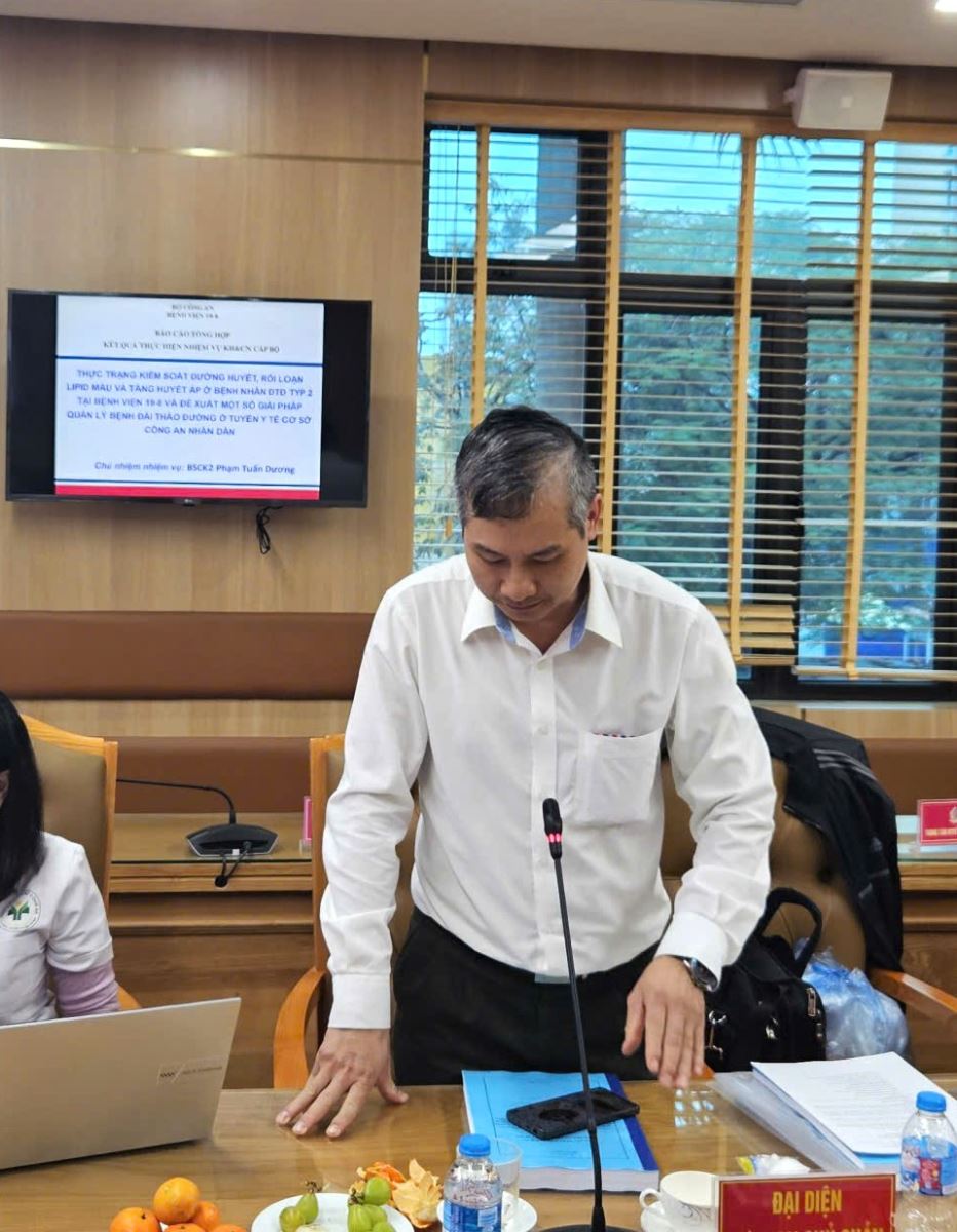 Nghiên cứu khoa học là một hoạt động trọng tâm, luôn được Bệnh viện 19-8 chú trọng nhằm nâng cao chất lượng chuyên môn, khuyến khích tinh thần sáng tạo và thúc đẩy ứng dụng khoa học vào thực tiễn trong công tác khám, chữa bệnh của đội ngũ y bác sĩ. Chiều ngày 12/02/2026, Bệnh viện 19-8 đã họp nghiệm thu cấp cơ sở 01 đề tài nghiên cứu khoa học cấp bộ “Thực trạng kiểm soát đường huyết, rối loạn lipid máu và tăng huyết áp ở bệnh nhân đái tháo đường type 2 tại Bệnh viện 19 – 8 và đề xuất một số giải pháp quản lý bệnh đái tháo đường ở tuyến y tế cơ sở Công an nhân dân” do BSCKII Phạm Tuấn Dương – Khoa Nội tiết làm chủ nhiệm đề tài.
