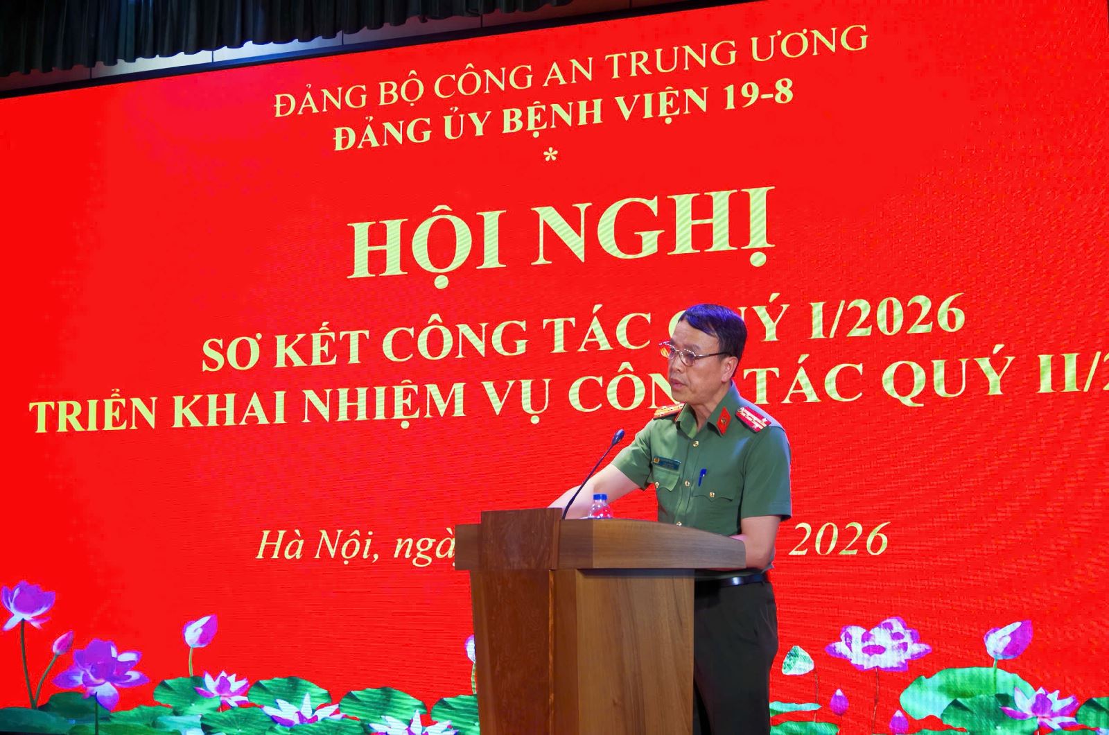 Hội nghị Đảng ủy mở rộng tháng 4/2026 của Bệnh viện 19-8 Bộ Công an đã diễn ra nghiêm túc, hiệu quả, thể hiện rõ vai trò lãnh đạo toàn diện của Đảng ủy trong việc nâng cao chất lượng công tác chuyên môn gắn với xây dựng đội ngũ cán bộ y tế bản lĩnh, trách nhiệm, tận tâm, vì sức khỏe nhân dân.