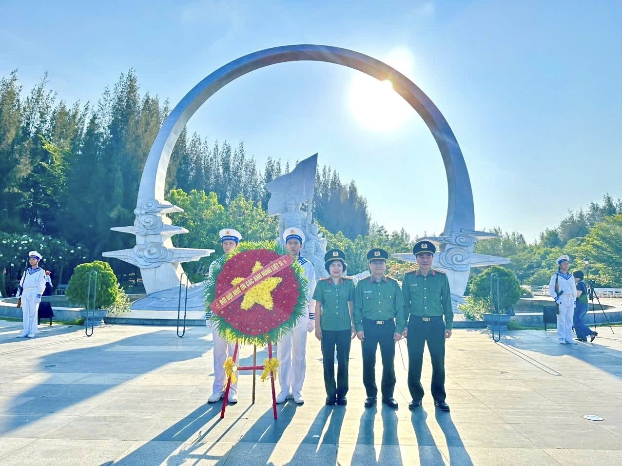 Từ Cam Ranh, con tàu đưa chúng tôi rời đất liền, bắt đầu hành trình ra biển lớn. Trước đó, đoàn đã dâng hương tại Đài tưởng niệm Gạc Ma, thăm các công trình tâm linh và làm việc với các đơn vị Hải quân – những người đang ngày đêm gìn giữ chủ quyền biển đảo.