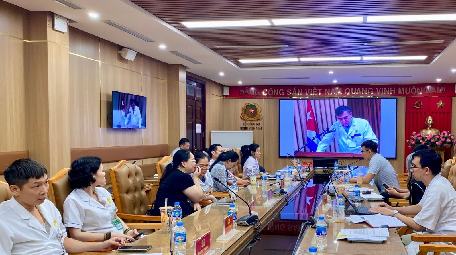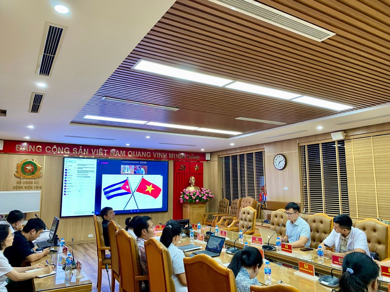Vào lúc 19h00 (giờ Việt Nam), thứ Sáu, ngày 03/10/2025, tương ứng 08h00 cùng ngày tại Cuba, Bệnh viện 19-8 Bộ Công an phối hợp với Bệnh viện CIMEQ Bộ Nội vụ Cuba tổ chức Hội thảo trực tuyến với chủ đề “Hướng đến việc thành lập đơn vị chăm sóc toàn diện cho bệnh nhân loét bàn chân do đái tháo đường”. Hội thảo tập trung thảo luận tính khả thi và tiềm năng triển khai mô hình này tại Bệnh viện 19-8, đồng thời đặt nền tảng cho các nghiên cứu tiếp theo nhằm chứng minh hiệu quả của sản phẩm Heberprot-P tại Việt Nam.