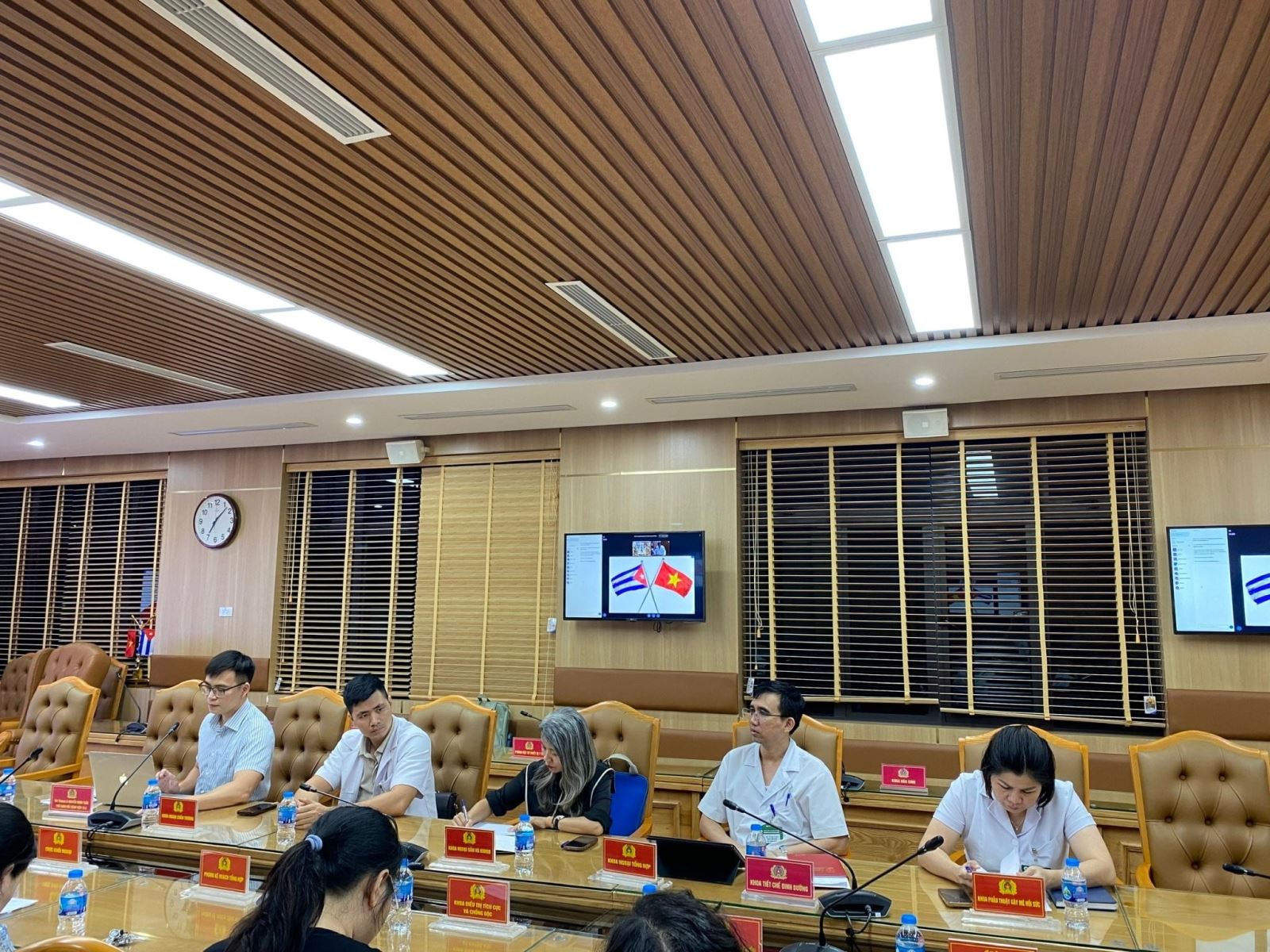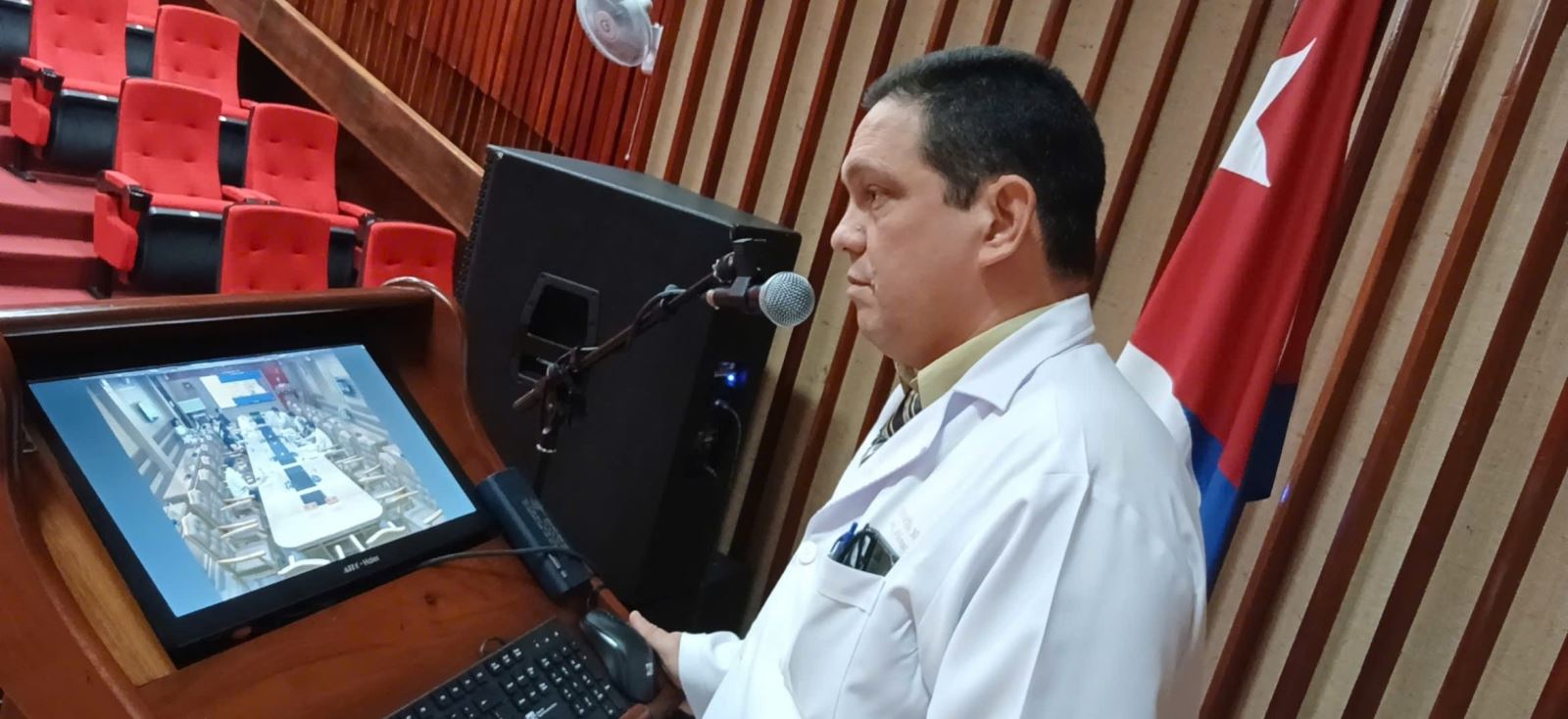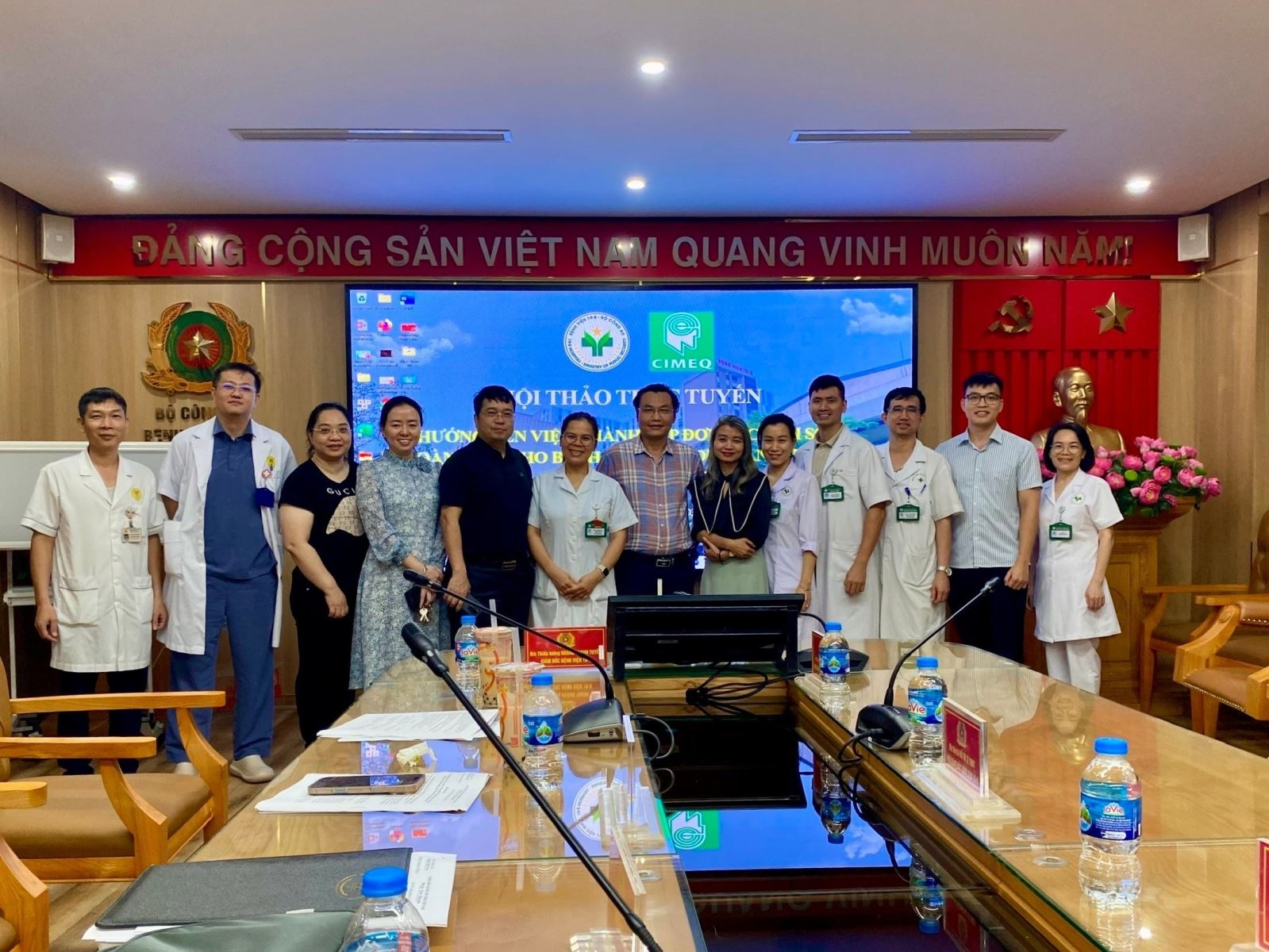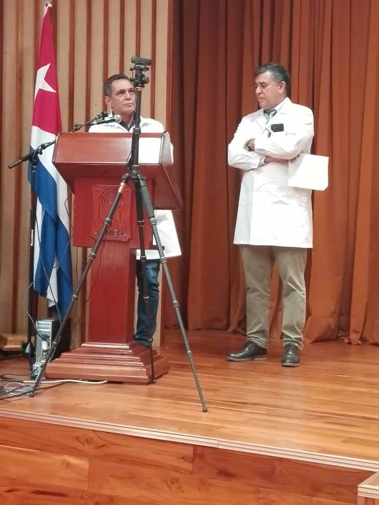Về phía Bệnh viện CIMEQ, Hội thảo có sự tham gia của TS. Julio Cesar Hernández Perera, liên lạc viên với Bệnh viện 19-8; TS. Yenisey Pérez Lobaina, Phó Giám đốc Y tế thứ nhất; TS. Carmen Adela Brito Portuondo, Phó Giám đốc Lâm sàng; TS. Waldo Jiménez, Phó Giám đốc Đào tạo và Nghiên cứu, cùng các chuyên gia đầu ngành như BS. Iván Rodríguez Cortina (Nội khoa – Nội tiết) và BS. Amel Alfonso Simón (Mạch máu). Ngoài ra, Hội thảo còn có sự hiện diện của đại diện Cục Đối ngoại – Bộ Ngoại giao Cuba, cùng đoàn Trung tâm Kỹ thuật Di truyền và Công nghệ Sinh học (CIGB) gồm BS. Miladis Limonta, Phó Giám đốc CIGB; BS. Julio Baldomero Hernández, Phó Giám đốc Nghiên cứu CIGB và BS. Liz Alvarez-Lajonchere Ponce de León, Quản lý sản phẩm Heberprot. Bên cạnh đó, một số đại biểu tham dự trực tuyến, gồm các đồng chí Norkis Arteaga Morales, Daymara González Fuentes và Manuel Enrique Montané Enrique đến từ Biocubafarma – Genfarma.