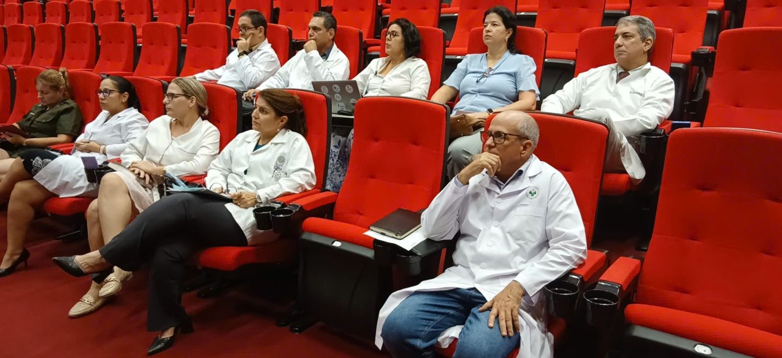 Các thành viên tham dự trực tiếp Hội thảo trực tuyến “Hướng đến việc thành lập đơn vị chăm sóc toàn diện cho bệnh nhân loét bàn chân do đái tháo đường” tại Bệnh viện CIMEQ Bộ Nội vụ Cuba.