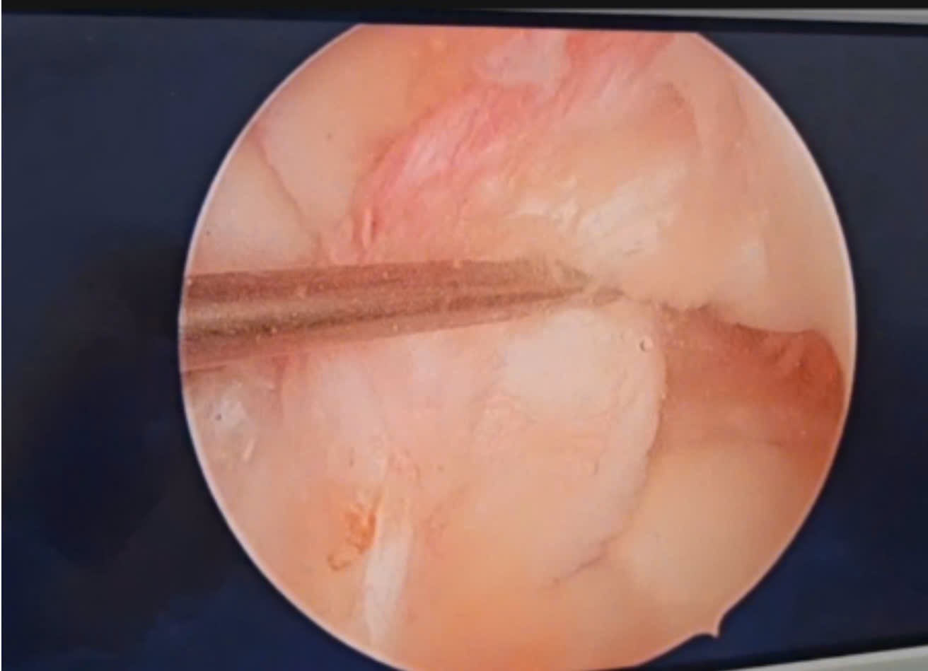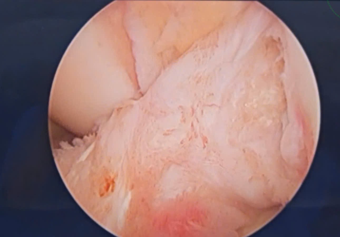 Hình 2. (Hình ảnh trong mổ) Dây chằng chéo trước đứt (mất sức căng) tại vị trí điểm bám lồi cầu đùi.