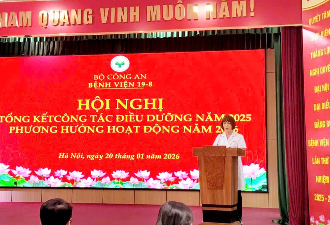 Ngày 20/01/2026, Bệnh viện 19-8 đã tổ chức Hội nghị tổng kết công tác điều dưỡng và công tác xã hội năm 2025. Triển khai nhiệm vụ trọng tâm năm 2026. Hội nghị có sự tham dự và chỉ đạo của đồng chí Đại tá. PGS.TS Nguyễn Tiến Quang, Giám đốc Bệnh viện và đồng chí Thượng tá. TS Nguyễn Minh Tuấn - Phó Giám đốc Bệnh viện, cùng đại diện lãnh đạo các khoa, phòng, trung tâm và các đồng chí điều dưỡng trưởng, Kỹ thuật viên trưởng và hộ sinh trưởng cùng các hội viên Chi hội Điều dưỡng toàn bệnh viện.